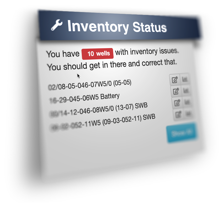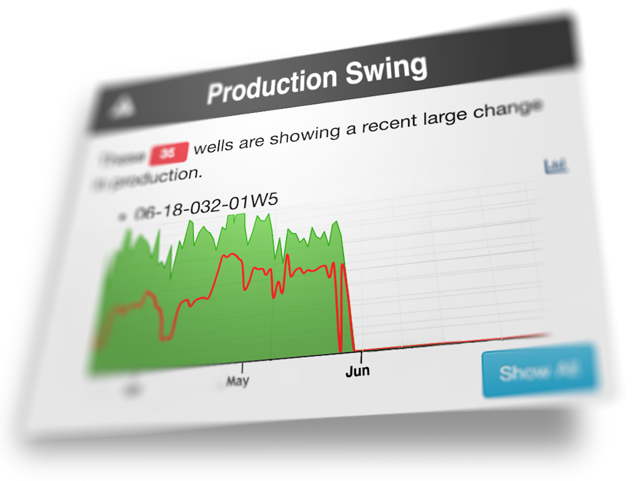 Wells with abnormally large changes in production - either by BOE or percentage - are flagged and highlighted on the dashboard